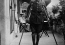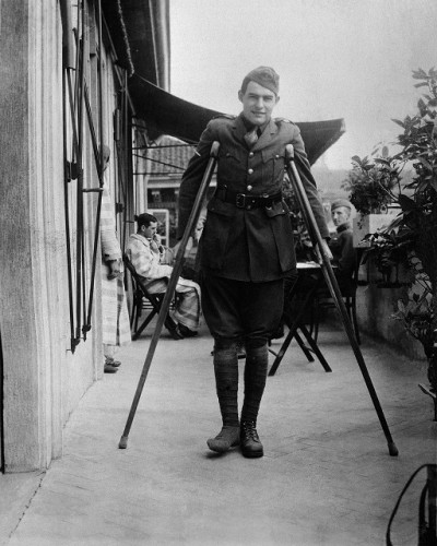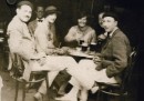 Hemingway – che era nato nel 1899 a Oak Park, un sobborgo di Chicago – arrivò per la prima volta in Europa come reporter del Kansas City Star, ma si arruolò poi come volontario nella Croce Rossa (guidava le ambulanze): dalla Francia fu trasferito sul fronte italiano e nel 1918, sul Piave, fu ferito da un colpo di mortaio. Venne ricoverato a Milano, in un appartamento al terzo e quarto piano di una casa in via Armorari che funzionava da ospedale della Croce Rossa. Fu lì che – proclama ancora oggi la lapide – “nacque la favola vera di Addio alle armi” (libro che racconta l’amore tra un’infermiera inglese e un guidatore di ambulanze americano sul fronte italiano). Nella prima foto della mostra c’è Hemingway a 19 anni in stampelle, proprio nell’ospedale di Milano. Durante gli anni Venti, a guerra finita, Hemingway si trasferì a Parigi dove entrò a fare parte del circolo di scrittori che poi lui stesso avrebbe fatto passare alla storia come “the Lost Generation”, “la generazione perduta” cresciuta negli anni della Prima guerra mondiale: ne facevano parte, tra gli altri, F. Scott Fitzgerald, John Steinbeck, William Faulkner e John Dos Passos. (L’epigrafe di Fiesta, il primo romanzo di Hemingway uscito nel 1926, è “You are all a lost generation” – “Siete tutti una generazione perduta” – frase che in Festa mobile Hemingway dice essere stata rivolta alla scrittrice Gertrude Stein da un carrozziere parigino). In seguito Hemingway partecipò alla Guerra di Spagna (raccontata in Per chi suona la campana, di cui il prossimo 21 ottobre cadrà il settantacinquesimo anniversario) e alla Seconda Guerra mondiale, ma nel 1940 si comprò anche una grande fattoria a Cuba.