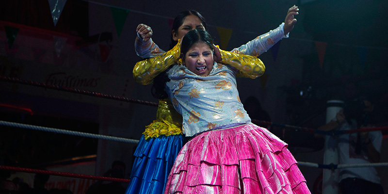 Tra le migliori fotografie di sport di questa settimana ce n’è una che non capita di vedere tutti i giorni: riguarda un incontro di wrestling boliviano femminile, una derivazione del lucha libre – un tipo di lotta libera nato in Messico negli anni Trenta. Le donne che si sfidano nel wrestling boliviano femminile sono chiamate Cholitas e sono solite combattere indossando abiti tradizionali messicani. Indossa abiti diversi dal solito anche il presidente russo Vladimir Putin, che alcuni giorni fa ha preso parte a Sochi, nel sud-est della Russia, a una partita amichevole di hockey insieme a “vecchie glorie” del campionato russo e di quello americano, la famosa NHL.