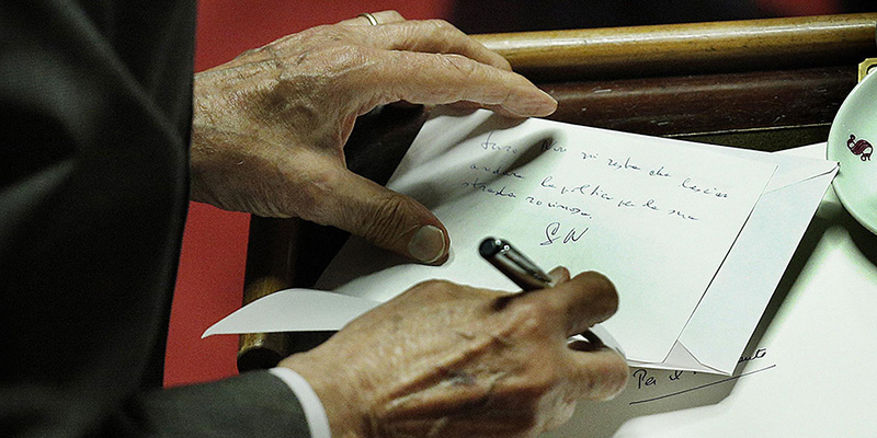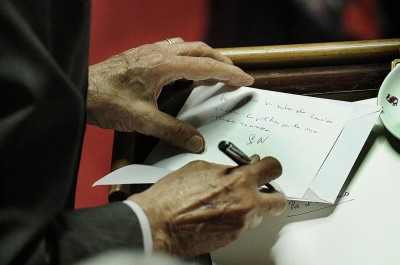 Martedì 13 ottobre è stata approvata la riforma del Senato, il cosiddetto “ddl Boschi”. Prima del voto ci sono stati molti interventi, per la maggior parte di esponenti di gruppi parlamentari che esprimevano la loro contrarietà o il loro appoggio alla riforma. C’è stato anche l’intervento dell’ex presidente della Repubblica Giorgio Napolitano, che ora è senatore a vita. Terminato il suo intervento in aula sulla riforma del Senato, Giorgio Napolitano, ex presidente della Repubblica e senatore a vita, ha inviato tramite i commessi una lettera al capogruppo di Forza Italia Paolo Romani in cui si parla di Silvio Berlusconi. Nel biglietto, che è stato fotografato, tra le altre cose c’è scritto: