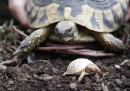 Loki è un tricheco di pochi mesi: è nato il 5 giugno allo zoo di Hagenbeck – a Amburgo, in Germania. Loki pesa già 111 chili. Ne pesa molti di meno la tartaruga albina nata tre settimane fa nel parco naturale “La valle delle tartarughe”, che si trova a Sorède, nel sud della Francia. La piccola tartaruga albina al momento sta comodamente nel palmo di una mano (e le avanza pure molto spazio). Così come il tricheco Loki, anche la tartaruga albina è stata fotografata vicino a sua madre. A completare le coppie tra le migliori foto di animali della settimana ci sono due oche nel cielo d’Inghilterra, due yaguarondi – dei felini di medie dimensioni diffusi in Sudamerica – e due scimpanzé intenti a mangiare una zucca.