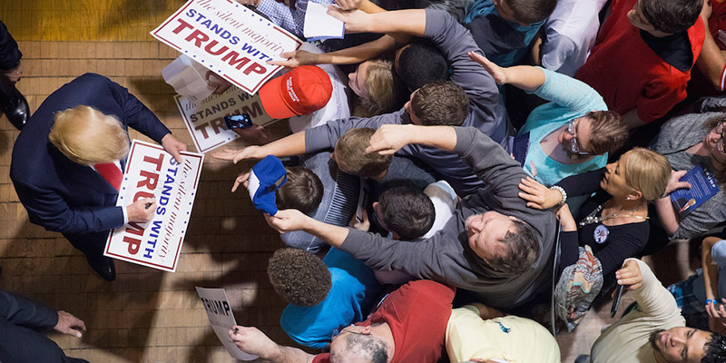 Le teatrali foto dei comizi del candidato che – finché dura – è in testa nei sondaggi tra i Repubblicani statunitensi