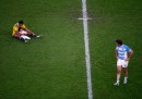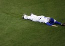 I New York Mets e i Kansas City Royals sono le due squadre di baseball che stanno giocando contro nelle World Series, le finali della Major League Baseball (MLB), il più importante campionato di baseball del Nordamerica. Daniel Murphy gioca per i New York Mets: nelle ultime ore sta girando molto una foto che lo mostra faccia a terra dopo non essere riuscito a prendere al volo una palla colpita da un avversario. È poco distante dall’erba ma sicuramente più felice il rugbista neozelandese Beauden Barrett, fotografato poco prima di segnare una delle mete con cui gli All Blacks hanno battuto l’Australia nella finale della Coppa del Mondo di rugby. È invece messa piuttosto male l’erba dello stadio Romero Cuerda, dove il 28 ottobre si è giocato Villanovense-Barcellona. Il Villanovense gioca nella terza serie del campionato spagnolo e ha incontrato il forte Barcellona nei sedicesimi di finale di Coppa del Re (quello che da noi è la Coppa Italia). Il ritorno sarà il 2 dicembre, al ben più grande stadio Camp Nou di Barcellona.