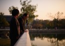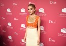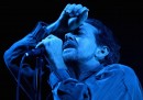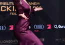 Tra le persone che valeva la pena fotografare questa settimana ce ne sono di molto colorate: c’è Eddie Vedder illuminato da una luce blu durante un concerto dei Pearl Jam in Cile, c’è l’attore e cantante Jared Leto con dei “nuovi” capelli rossi e ci sono Jennifer Lawrence e la regina Elisabetta vestite di viola. Cambia la posa, la tonalità di viola e anche il luogo: la regina Elisabetta era in visita alla base militare di Imjin Barracks, nel Gloucester; Lawrence era a Berlino per la prima mondiale di The Hunger Games: Mockingjay – Parte II, che in Italia uscirà il 19 novembre. Ci sono anche un paio di coppie tra le celebrità fotografate negli ultimi sette giorni: Angelina Jolie e Brad Pitt al MOMA di New York, e Gianni Morandi con la poetessa Dacia Maraini, invitati da Fabio Fazio per parlare di Pasolini, a cui capitò di giocare a calcio con Morandi. Tra le più belle persone fotografate questa settimana ce ne sono tre che è ormai da trent’anni che sono belle: Demi Moore, Naomi Campbell e Cindy Crawford.