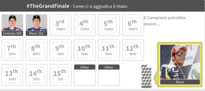– Se né Lorenzo né Rossi vanno ai punti (perché cadono o arrivano dopo il 15esimo posto) vince Rossi, con sette punti di vantaggio