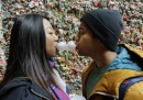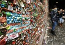 Il “Gum Wall” è un muro di Seattle, nello stato di Washington, quasi completamente ricoperto da gomme da masticare usate e appiccicate lì nel corso degli ultimi 20 anni. Il muro si trova in Post Alley, una stretta via tra gli edifici del Pike Market di Seattle. Le gomme hanno iniziato ad essere appiccicate sul muro all’inizio degli anni Novanta dalle persone in coda per gli spettacoli del Market Theater, un teatro ospitato negli edifici del Pike Market. Negli ultimi anni, poi, il “Gum Wall” era diventato una specie di attrazione turistica e il numero di gomme sul muro era conseguentemente aumentato molto. I dirigenti del Pike Market hanno spiegato che a causa del caldo la scorsa estate le gomme hanno cominciato a puzzare e per questo è stato deciso di pulire i muri, ma hanno anche aggiunto che non cercheranno di impedire che le persone comincino nuovamente ad appiccicarci le gomme.