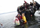 Sull’isola greca di Lesbo, nell’Egeo nord-orientale a pochi chilometri dalle coste della Turchia, sono proseguiti anche negli ultimi giorni gli sbarchi dei migranti, per lo più famiglie siriane che hanno lasciato il loro paese a causa della guerra civile in corso, che dura ormai dal 2011. Per raggiungere Lesbo i migranti devono attraversare un tratto di mare largo tra i 9 e i 20 chilometri, a seconda del punto di partenza dalla costa turca. Raggiunta l’isola, si trovano in territorio greco e di conseguenza europeo, avendo quindi più possibilità per vedere accolta la loro richiesta di asilo o proseguire il loro viaggio verso Atene e in seguito nei paesi del nord Europa, dove spesso si ricongiungono con amici e parenti che si sono già stabiliti nelle città europee. Anche se breve, il viaggio è comunque pericoloso e viene spesso effettuato su piccole imbarcazioni, instabili e riempite oltre la loro capacità. Il fotografo Bulent Kilic di AFP ha realizzato negli ultimi giorni un reportage da Lesbo, mostrando le condizioni in cui arrivano i migranti e come vivono sull’isola prima della loro ripartenza.