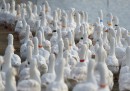 Woody è un leone marino di Steller morto il 9 novembre all’Alaska SeaLife Center. Il centro ha spiegato che Woody aveva smesso di mangiare e le sue condizioni di salute stavano peggiorando rapidamente: era stato trasferito al centro quando aveva cinque anni insieme ad altri due leoni marini di Steller, Sugar e Kiska, morti rispettivamente nel 2010 e nel marzo del 2015. Nel corso degli ultimi anni era stato visitato da più di due milioni di persone. Tra le foto migliori di animali di questi giorni sono ce n’è una delle lumache di “La lumaca madonita“, un centro di allevamento di lumache che si trova a Campofelice di Roccella, in provincia di Palermo. “La lumaca madonita” si estende su una superficie di 25mila metri quadrati vicino alle Madonie, le montagne nella Sicilia settentrionale che fanno parte dell’Appennino siculo: l’azienda si occupa della vendita al dettaglio e all’ingrosso di «tutte le tipologie di lumache da gastronomia». L’uovo della foto è invece quello di Aepyornis. Gli Aepyornis – chiamati anche uccelli elefante – si sono estinti circa 500 anni fa. Quando esistevano, vivevano in Madagascar e si pensa raggiungessero i tre metri d’altezza.