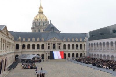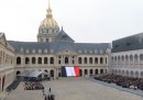 Si è svolta nel cortile d’onore dell’Hôtel National des Invalides, sono stati letti i nomi delle 130 persone uccise e Hollande ha fatto un discorso solenne