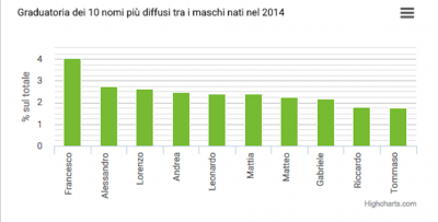 L'ISTAT dice che il nome più popolare è Francesco, soprattutto da qualche anno, e potete immaginare perché: ma ci sono altre tendenze interessanti