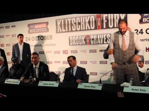Pochi mesi fa, durante una delle conferenze di presentazione al match contro Wladimir Klitschko, Fury interruppe il pugile ucraino, che si stava chiedendo se Fury avesse detto “ti mando k.o.” o “ti uccido”. Quando Klitschko gli rispose definendolo un “pagliaccio”, Fury si alzò dalla sedia togliendosi la giacca e urlando lo invitò a combattere con lui in quello stesso istante. Fury si presentò a quella conferenza vestito da Batman e al suo ingresso inscenò una lotta con un altro uomo travestito da Joker. Poi si rivolse a Klitschko dicendogli che il prossimo sarebbe stato lui. Prima della conferenza si era rifiutato di stringere la mano all’avversario.