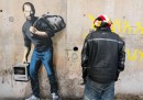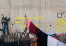 L’artista britannico Banksy ha pubblicato sul proprio sito le foto di un nuovo murale che ha fatto su un muro della Giungla di Calais, l’enorme baraccopoli dove vivono i migranti che dalla Francia provano a raggiungere il Regno Unito. Il disegno raffigura l’ex CEO di Apple Steve Jobs con in mano una sacca e un vecchio computer Apple. Banksy fa riferimento al fatto che il padre biologico di Jobs era un rifugiato siriano di nome Abdul Fattah Jandali, che arrivò a New York negli anni Cinquanta (qui c’è una breve storia della vita molto movimentata di Jandali). Le autorità di Calais hanno fatto sapere nella sera del 12 dicembre che proteggeranno i murales di Banksy, per evitare che venga danneggiato. Il sindaco di Calais Natacha Bouchart ha spiegato che i murales saranno protetti con dei pannelli trasparenti di plastica o di vetro: «Sono molto belli, e hanno un significato», ha detto. Il Guardian ha riportato sul suo sito un comunicato di Banksy associato al nuovo disegno. Spiega Banksy: