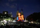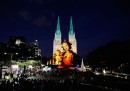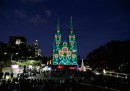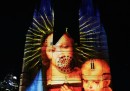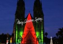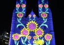 Le proiezioni colorate sulla facciata della cattedrale di Saint Mary, in occasione del Natale