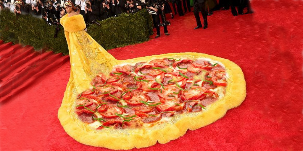 Nel maggio scorso, durante la serata del MET Ball 2015 – l’evento che inaugura ogni anno una mostra di moda al Costume Institute del Metropolitan Museum of Art di New York – Rihanna si è presentata con un vestito giallo molto appariscente, con un lungo mantello a strascico ricamato e orlato di pelliccia, che pesava 25 chili. La sua apparizione ha contribuito a rendere famosa Guo Pei, la stilista che ha creato l’abito – di cui abbiamo raccontato la storia qui. Sul web si sono diffuse diverse parodie e prese in giro: tra le più condivise ci sono quelle in cui lo strascico è stato trasformato in una pizza o in una frittata.