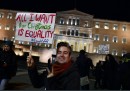 Nella notte tra martedì 22 e mercoledì 23 dicembre, il parlamento della Grecia ha approvato una legge per legalizzare le unioni tra persone dello stesso sesso. La proposta era stata fatta qualche mese fa dal governo di Alexis Tsipras. Il testo è passato grazie al voto di un pezzo dell’opposizione, oltre che il grosso della maggioranza che sostiene il governo Tsipras: hanno votato a favore i socialisti del PASOK, i centristi di To Potami e l’Unione dei centristi. Hanno votato a favore anche tre degli undici deputati del partito di destra alleato di Tsipras (Greci Indipendenti) e 29 deputati (su 75) di Nuova Democrazia, partito di centrodestra precedentemente al governo. La legge ha ottenuto in totale 194 sì e 55 no (il parlamento ha 300 seggi in totale) e entrerà in vigore il prossimo anno, dopo la pubblicazione in Gazzetta Ufficiale.