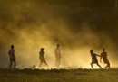 Bambini che giocano a calcio nella foschia in Myanmar, newyorkesi che pattinano sbracciati e bizzarri fan del cricket, nelle migliori foto sportive della settimana