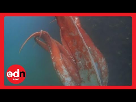 È una delle poche volte che un calamaro gigante – lungo circa 4 metri – viene visto e filmato da vivo