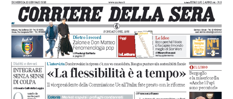 Le prime pagine di domenica 10 gennaio 2016