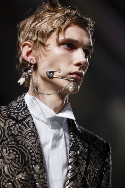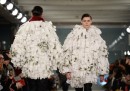 Le collezioni di cui si è parlato di più sono quelle di Alexander McQueen, disegnata da Sarah Burton, e J.W. Anderson (disegnata da Jonathan Anderson) che, come ha spiegato Rebecca Gonsalves sull’Independent, si sono entrambi ispirati al mondo animale: McQueen alle farfalle e Anderson alle lumache. Sono girate molto anche le foto dei modelli di McQueen con una particolare spilla da balia inserita in bocca che sembra trafigga la guancia (stessa cosa per i modelli del marchio SEAN SUEN, che avevano anche finti tatuaggi disegnati nel backstage).