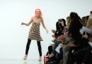 Che ha aperto come ogni anno la stagione delle sfilate: c'erano modelli con finti tatuaggi e spille da balia in faccia, lumache, farfalle e le solite creazioni pop di Moschino