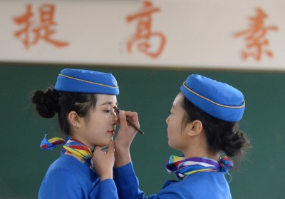 Per diventare una hostess che lavora su treni ad alta velocità è necessaria una preparazione specifica. Il Bishan Vocational Education Center a Chongqing, in Cina, istruisce le aspiranti hostess a questo scopo: bisogna essere curate nell’aspetto, ad esempio scurendosi le sopracciglia, tenere la postura corretta e sapere pulire posate e bicchieri nel mondo giusto. Per riuscire a sorridere a lungo ci si può allenare tenendo un bastoncino tra i denti.