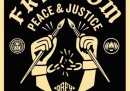 Da oggi, 21 gennaio, al 28 febbraio la galleria ONO Arte contemporanea di Bologna ospita la mostra Shepard Fairey: OBEY, che raccoglie 15 opere del celebre street artist contemporaneo statunitense. Fairey è famoso soprattutto per aver disegnato nel 2008 il poster HOPE, diventato il simbolo della campagna presidenziale di Barack Obama: si tratta di un ritratto stilizzato di Obama in rosso, blu e beige, accompagnato dalla parola HOPE, “speranza”. Fairey vendette le prime 350 copie in strada subito dopo averle stampate; in breve tempo il ritratto divenne l’immagine più riconoscibile e simbolica della campagna di Obama e fu poi acquistato dalla National Portrait Gallery di Washington DC.