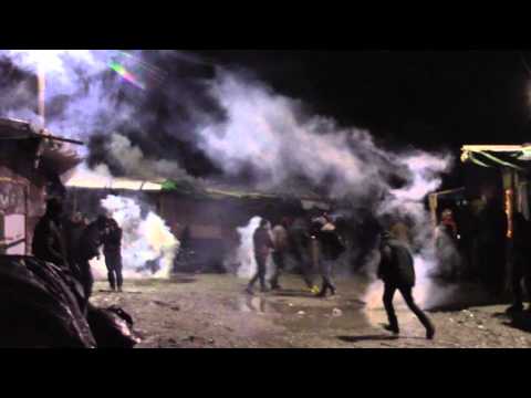 In un angolo del disegno c’è un codice QR che rimanda al video di un’operazione dello scorso 5 gennaio della polizia francese nel campo di migranti, in cui si vede chiaramente l’uso di gas lacrimogeni e proiettili di gomma da parte degli agenti. Da settimane le autorità francesi stanno cercando di demolire una parte del campo di Calais e “sfrattare” circa 1.500 rifugiati.