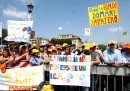 Oggi si è tenuta al Circo Massimo a Roma una manifestazione di cattolici conservatori chiamata Family Day contro il disegno di legge Cirinnà, attualmente in discussione al Senato, che prevede l’introduzione delle unioni civili per le coppie omosessuali. L’espressione Family Day – per quanto fuorviante – è in uso già da alcuni anni nel dibattito politico italiano: fa riferimento a una prima, enorme manifestazione di piazza di cattolici conservatori che nel 2007 protestò – con successo – contro il disegno di legge del governo Prodi sulle unioni civili, e a una successiva manifestazione nell’estate 2015 che ne riprendeva lo spirito, quella volta per criticare il ddl Cirinnà, allora appena proposto.