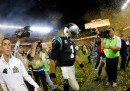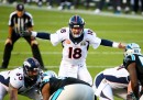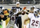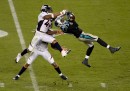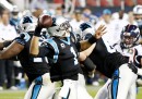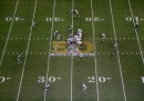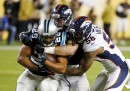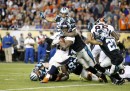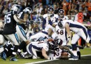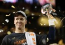Hanno giocato benissimo invece la partita le difese di entrambe le squadre: nel football americano i ruoli del reparto difensivo e di quello d’attacco sono ben distinti e si può quasi dire che i giocatori di attacco e quelli di difesa facciano parte quasi di due squadre differenti. Fino all’ultimo quarto di gioco i Broncos conducevano per 16 a 7, avendo segnato 3 Field goal (quando la palla viene calciata tra i due pali a fondo campo), da 3 punti ciascuno, e un solo touchdown, segnato dai giocatori della difesa che avevano recuperato una palla persa. Come miglior giocatore della partita, cioè il “Super Bowl MVP”, è stato scelto Von Miller, l’outside linebacker dei Broncos: è un giocatore della difesa il cui compito principale è il “caccia-quarterback”; quando parte l’azione alcuni giocatori dell’attacco cercano di proteggere il quarterback per dargli il tempo di lanciare la palla a un compagno, mentre i giocatori della difesa avversaria cercano di placcarlo. Von Miller ha giocato particolarmente bene, causando la palla persa con cui è stato segnato il primo touchdown dei Broncos.