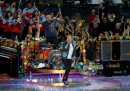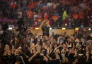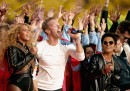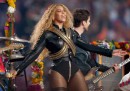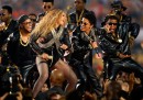 L’inno nazionale prima dell’inizio della partita è stato cantato da Lady Gaga. Ad esibirsi per l’Halftime Show – lo spettacolo dell’intervallo fra il secondo e il terzo quarto della partita, che per chi è poco appassionato di sport è uno dei motivi principali per seguire il Super Bowl – c’erano i Coldplay (gli ospiti principali), Bruno Mars e Beyoncé. Lo spettacolo è stato molto meno appariscente di quello dell’anno scorso, quando Katy Perry aveva fatto il suo ingresso sul campo a cavallo di una gigantesca tigre finta. Beyoncé ha cantato la sua canzone più recente, “Formation”, il cui video – diffuso qualche giorno fa – è stato girato a New Orleans: la canzone ha molti riferimenti politici, in particolare a “Black Lives Matter”, il movimento statunitense nato per protesta contro le violenze della polizia nei confronti dei neri. Bruno Mars e Beyoncé sono stati entrambi gli ospiti principali di edizioni passate del Super Bowl, rispettivamente nel 2014 e nel 2013.