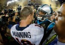 I due giocatori più attesi della partita, il quarterback dei Carolina Panthers Cam Newton e quello dei Denver Broncos Peyton Manning, hanno giocato entrambi una brutta partita. Newton in particolare non è riuscito a fare nessuna delle cose per cui è stato eletto MVP (Most Valuable Player, cioè miglior giocatore della stagione): non ha lanciato bene, non ha corso molto e non è sembrato mai a suo agio in partita; di solito è sempre sorridente e molto sicuro di sé mentre domenica è stato molto teso fin dall’inizio. Manning è considerato uno dei quarterback più forti di sempre, se non “il” più forte: quest’anno – a 39 anni – ha avuto una stagione mediocre e durante il Super Bowl ha fatto il minimo indispensabile, sbagliando spesso quando cercava di fare qualcosa in più. Nel corso della sua carriera Manning ha vinto cinque volte il titolo di MVP della stagione ma finora era riuscito a vincere un solo campionato, arrivando tre volte in finale. Una vittoria al Super Bowl è uno dei migliori modi per ritirarsi dal football professionistico e in molti pensano che nei prossimi giorni Manning annuncerà la decisione di smettere di giocare.