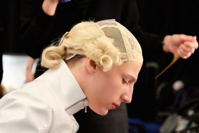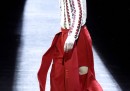 La sfilata – che, ricordiamolo, presentava i capi per l’autunno/inverno 2016-17 – si chiama “Pellegrinaggio” ed è ispirata in particolare alla crisi dei migranti siriani e al viaggio che affrontano per arrivare in Europa: lo mostrano – scrive Vogue – gli stivaloni in vernice rossa con i tacchi portati anche dagli uomini e i giacconi enormi, che ricordano l’equipaggiamento necessario per un lungo viaggio verso una destinazione sconosciuta. Ha sfilato a petto nudo e con un giaccone gonfiabile anche l’artista russo Slava Mogutin: è anche un attivista per i diritti LGBT (lesbiche, gay, bisessuali e transgender) che vive a New York dal 1995, dopo aver ottenuto asilo politico negli Stati Uniti in quanto omosessuale perseguitato in Russia.