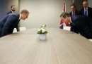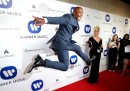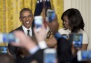 Tra le moltissime immagini di celebrities arrivate sulle agenzie fotografiche questa settimana – tra la Berlinale, i Grammy Awards 2016 e i BAFTA, di cui trovate racconti fotografici più estesi qui, qui, qui e anche qui – spiccano le smorfie di attori, politici e sportivi: quella che Barack Obama fa a Michelle e quella di Colin Firth con Jude Law, ma anche di Cristiano Ronaldo e del principe Carlo mentre assaggia il tè. Tra i molti cantanti ai Grammy Awards 2016 mancava Rihanna, fotografata però nella sua altra professione di stilista per Puma alla settimana della moda di New York. Poi ci sono Sara Errani a Dubai e Kobe Bryant che abbraccia la figlia, a Toronto; e il patriarca Kirill in posa con dei pinguini.