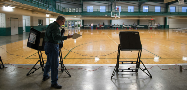 L’allestimento di un seggio a Conway, in Arkansas. (MICHAEL B. THOMAS/AFP/Getty Images)