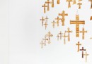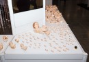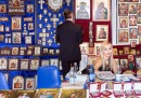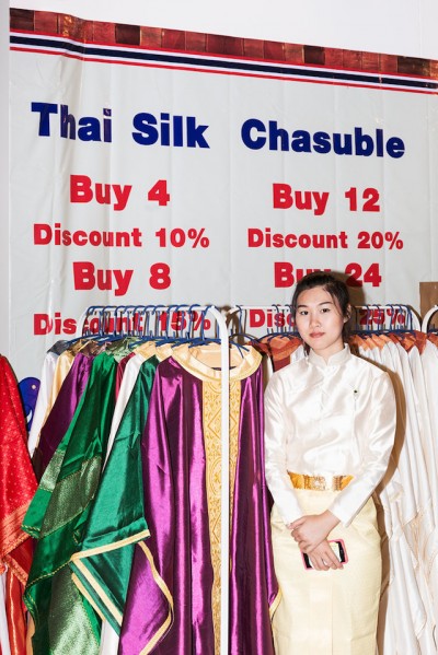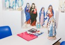 Madonne in ordine di grandezza, statuine di Gesù da appendere alle pareti e abiti da cerimonia, tra le altre cose fotografate da Louis De Belle alla fiera religiosa di Vicenza