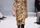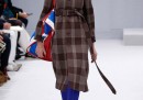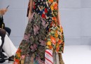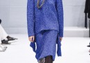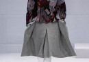 Soprattutto ha saputo combinare streetwear e haute couture: ha abbinato piumini e giubbotti sportivi a completi formali a quadri o in tweed; ha ripreso le maniche bombate usate spesso da Balenciaga e lavorato molto sulla silhouette, andando contro la tendenza degli abiti molto asciutti e aderenti. Ha inventato accessori originali, come le maxi catene porta-occhiali colorate e gli stivaloni in vernice con maxi platform (una suola molto alta), tipici del suo stile. C’erano anche borse in pelle colorata molto grandi (contrariamente alle tendenza di avere borsette e portafogli sempre più piccoli) che, scrive Fashionista, venderà probabilmente molto bene, e molti abiti asimmetrici e a fiori. Le modelle non erano truccate ed erano volutamente pettinate senza particolare ricercatezza, in modo normale e anonimo, e hanno sfilato sulla passerella che richiamava uno studio televisivo, con le pareti bombate a riprendere le curve degli abiti.