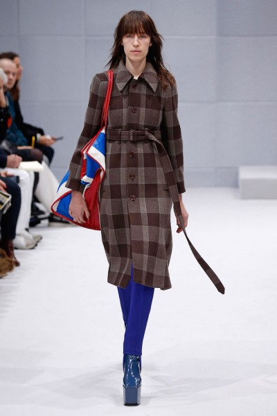 Soprattutto ha saputo combinare streetwear e haute couture: ha abbinato piumini e giubbotti sportivi a completi formali a quadri o in tweed; ha ripreso le maniche bombate usate spesso da Balenciaga e lavorato molto sulla silhouette, andando contro la tendenza degli abiti molto asciutti e aderenti. Ha inventato accessori originali, come le maxi catene porta-occhiali colorate e gli stivaloni in vernice con maxi platform (una suola molto alta), tipici del suo stile. C’erano anche borse in pelle colorata molto grandi (contrariamente alle tendenza di avere borsette e portafogli sempre più piccoli) che, scrive Fashionista, venderà probabilmente molto bene, e molti abiti asimmetrici e a fiori. Le modelle non erano truccate ed erano volutamente pettinate senza particolare ricercatezza, in modo normale e anonimo, e hanno sfilato sulla passerella che richiamava uno studio televisivo, con le pareti bombate a riprendere le curve degli abiti.