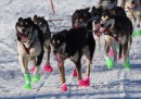 L’Iditarod è una leggendaria corsa per cani da slitta che si corre ogni anno dal 1967, in Alaska. Tradizionalmente la gara è lunga 1800 chilometri e si corre tra Anchorage, la città più grande dello stato, e Nome, un posto di tremila abitanti, sul mare di Bering. Alla corsa partecipano circa 80 musher (guidatori di slitta) che possono guidare fino a 16 cani. A causa della scarsità di neve di quest’anno la gara è partita ufficialmente da Willow, a circa 80 chilometri a nord di Anchorage, e durerà tra gli otto e i dodici giorni. Sempre per colpa della scarsità di neve, quest’anno anche le 11 miglia del percorso della tradizionale corsa di inaugurazione, che si è svolta sabato 5 marzo ad Anchorage, sono diventate 3, e c’è stato bisogno di far arrivare della neve con dei camion da Fairbanks, che si trova a circa 250 chilometri da Anchorage. Questa stagione invernale è stata una delle più calde registrate in Alaska dal 1925.