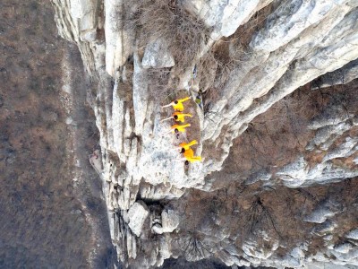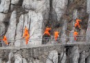 Gli spettacolari esercizi di un gruppo di monaci buddhisti sul fianco di una montagna considerata sacra, in barba alle vertigini
