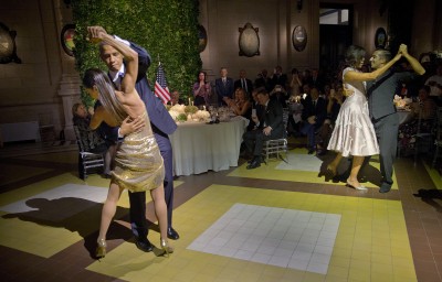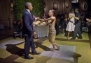 Mercoledì sera il presidente degli Stati Uniti Barack Obama e la moglie Michelle hanno partecipato a una cena di stato al Centro Cultural Kirchner di Buenos Aires, organizzata per loro dal presidente argentino Mauricio Macri. Dopo la cena si è esibito un gruppo di ballerini di tango, il Bajo Fondo, e a un certo punto la ballerina si è avvicinata a Obama e l’ha invitato a ballare: Obama si è un po’ schermito ma poi ha accettato, e lo stesso ha fatto la moglie Michelle con un altro ballerino.