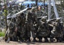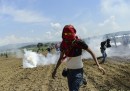 Questa mattina alcuni migranti del campo profughi del piccolo paese greco di Idomeni, al confine con la Macedonia, si sono scontrati con la polizia macedone che sorvegliava la recinzione che segna il confine tra i due paesi. Restando in territorio macedone, i poliziotti hanno lanciato gas lacrimogeno, granate stordenti, proiettili di plastica e hanno usato un cannone ad acqua contro un gruppo di migranti che stava provando ad entrare in Macedonia scavalcando la recinzione. Alcuni migranti hanno reagito lanciando pietre verso la polizia macedone. Un membro di Medici Senza Frontiere ha detto ad Agence France-Presse che decine di migranti sono rimasti feriti, perlopiù a causa di problemi respiratori, e che tre persone sono state ricoverate in un ospedale locale. Secondo BBC, la polizia greca ha assistito senza reagire alla scena andata avanti per più di un’ora, dice una giornalista greca che si trovava a Idomeni. Associated Press ha scritto che gli scontri sono continuati anche nel pomeriggio.