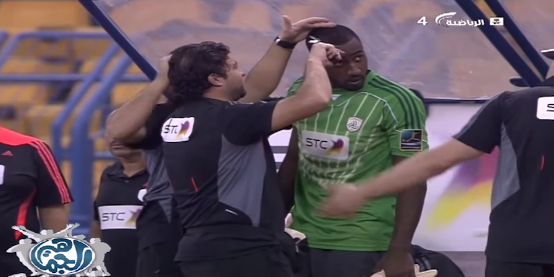 Nei giorni scorsi molti siti e giornali sportivi italiani e internazionali – in Italia, tra gli altri, Corriere della Sera, Repubblica, Gazzetta dello Sport, il Fatto, la Stampa – hanno pubblicato un video che mostra un arbitro della Prima Divisione di calcio saudita interrompere una partita di campionato per tagliare la cresta di capelli di Waleed Abdullah, portiere dell’Al Shabab, giudicata “contraria alle tradizioni dell’Islam e dell’Arabia Saudita”. Il video è autentico, ma il fatto è accaduto almeno quattro anni fa e nessun giornale lo ha fatto notare: la data di pubblicazione su YouTube risale all’agosto del 2012. Dal video si può riconoscere l’allenatore ed ex portiere belga Michel Preud’homme, che allenò l’Al Shabab dal 2011 al 2013 e che oggi invece allena il Club Bruges, in Belgio.