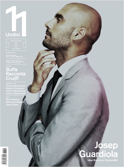 È uscito oggi a Milano e uscirà domani nel resto d’Italia il nuovo numero di Undici, la rivista trimestrale di calcio e cultura realizzata in collaborazione con Rivista Studio. Sulla copertina del nuovo numero c’è Pep Guardiola, attuale allenatore del Bayern Monaco e dalla prossima stagione del Manchester City, la cui storia viene analizzata e raccontata con articoli di James Montague, Jonathan Wilson, Paolo Condò e Michele Tossani. Tra le altre cose di questo numero, poi, ci sono Federico Buffa che racconta Johan Cruijff e Giorgio Burreddu che intervista l’allenatore del Bologna Roberto Donadoni. Ci sono anche un reportage fotografico del Borussia Dortmund e un articolo dedicato a Roman Abramovich, presidente del Chelsea.