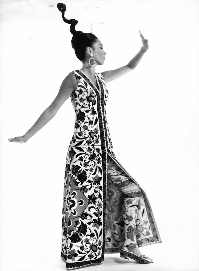 emilio pucci fuseaux Una modella indossa abiti di Emilio Pucci, tra cui un paio di fuseaux, nel 1976 (Keystone Pictures USA/ZUMAPRESS.com).