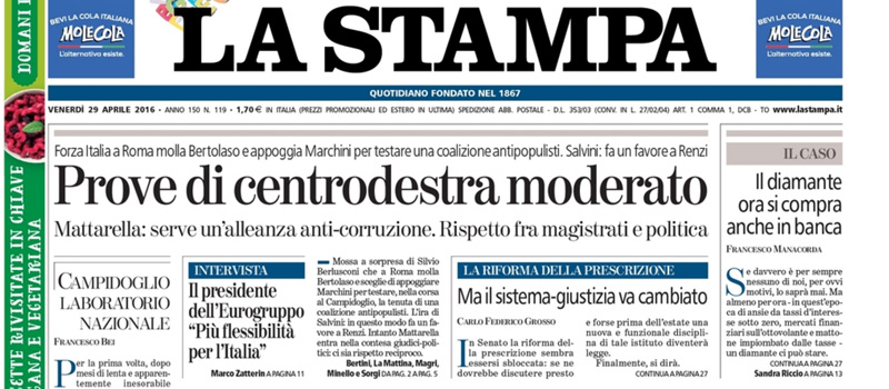 Le prime pagine di venerdì 29 aprile 2016