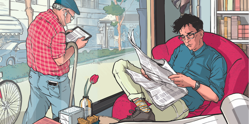La copertina del nuovo numero di IL, disegnata da Marta Signori, è dedicata al futuro dei giornali tradizionali. Che cosa stanno facendo due dei grandi quotidiani europei, quale modello sta prevalendo e che cosa si muove nel mondo dell’editoria e della circolazione delle idee?
