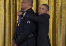 Le celebrities sono quasi tutte a Cannes, questa settimana, motivo per cui abbiamo cercato di non esagerare in questa raccolta settimanale: se il genere Cannes e red carpet vi appassiona, cliccate qui. Tra gli attori che a Cannes non sono andati – mi-si-nota-di-più, eccetera – ci sono Zac Efron e Adam Sandler, per esempio. Tra gli altri eventi della settimana ricchi di fotografi e flash, ci sono state alcune cerimonie: quella di inaugurazione del nuovo anno del Parlamento a Londra, con la regina Elisabetta II addobbata da regina; quella per le medaglie al valore consegnate da Barack Obama a Washington (in un caso si è trovato abbastanza in difficoltà, come mostra la foto); quella di conferimento di un dottorato honoris causa a Spike Lee, alla Johns Hopkins University di Baltimora. Poi valeva la pena fotografare l’esultanza contenuta di Stephen Curry e quella di energica di Zlatan Ibrahimovic, Angela Merkel con degli occhiali buffi, il principe William in guantoni da box e un politico che bacia una rana, tra gli altri.