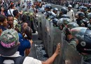 Si trattava della terza manifestazione anti-Maduro negli ultimi giorni repressa e dispersa dalla polizia con cariche e gas lacrimogeni. I manifestanti che hanno partecipato all’ultima marcia, circa un migliaio, gridavano slogan contro Maduro (“questo governo cadrà”) dietro una grande bandiera venezuelana e tenevano in mano cartelli con gli elenchi dei prodotti di prima necessità che sono scomparsi dagli scaffali dei supermercati: in Venezuela da mesi mancano cibo, medicinali e attrezzature negli ospedali, non ci sono più soldi nemmeno per stampare i soldi e i dipendenti pubblici lavorano solo due ore al giorno perché non c’è elettricità.
