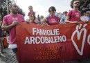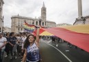 A Roma è iniziato oggi pomeriggio il Gay Pride, il primo da quando lo scorso 11 maggio è stata approvata la legge sulle unioni civili. Lo slogan della manifestazione di quest’anno è “Chi non si accontenta lotta”. Il corteo è partito da piazza della Repubblica e terminerà in piazza Madonna del Loreto, vicino a piazza Venezia. Gli organizzatori hanno detto che i partecipanti sono stati 700mila, ma come al solito è difficile confermare queste cifre. Nessuno dei due candidati sindaco che si affronteranno al ballottaggio di domenica 19 giugno ha partecipato alla manifestazione. Roberto Giachetti, candidato del PD, ha detto che parteciperà volentieri al Pride del prossimo anno se sarà eletto sindaco. Gli organizzatori dicono invece di non aver avuto alcun contatto con Virginia Raggi, candidata del Movimento 5 Stelle.