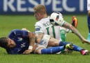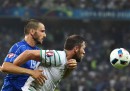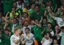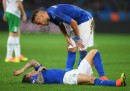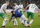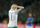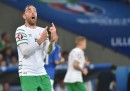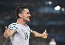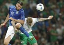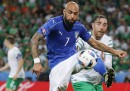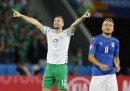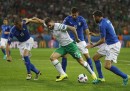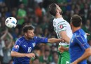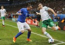 L’Irlanda ha battuto l’Italia 1-0 nella terza e ultima partita del girone E degli Europei di calcio. Per l’Italia si tratta di un risultato ininfluente: sulla base dei risultati delle prime due partite, era già sicura della qualificazione agli ottavi di finale e del primo posto nel girone. Anche per questo l’allenatore della Nazionale italiana, Antonio Conte, ha schierato 9 riserve sugli 11 giocatori in campo. L’Irlanda, invece, avrebbe potuto ottenere la qualificazione solo vincendo: e così ha fatto, entrando tra le migliori terze classificate dei gironi e passando così agli ottavi di finale. Il gol che ha deciso la partita è stato segnato da Robert Brady a cinque minuti dalla fine del tempo regolamentare; poco prima l’Irlanda aveva sprecato una grande occasione. L’Italia ha giocato male e si è resa pericolosa solo con un tiro di Lorenzo Insigne, entrato in campo nel secondo tempo, che ha colpito il palo.