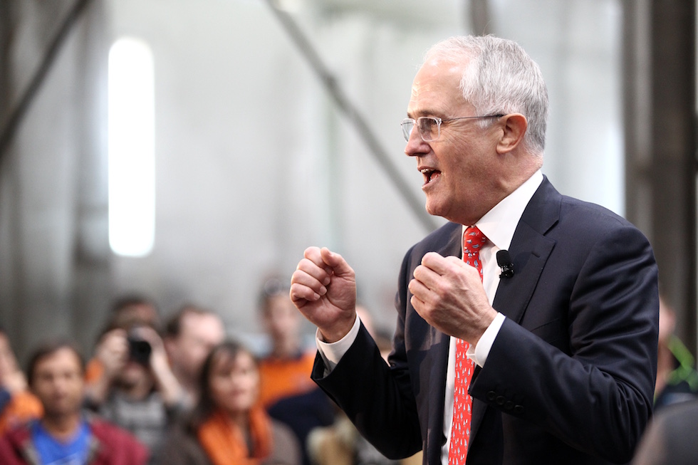 Il primo ministro australiano, Malcolm Turnbull, a un evento di campagna elettorale a Brisbane, in Australia (Stefan Postles/Getty Images)